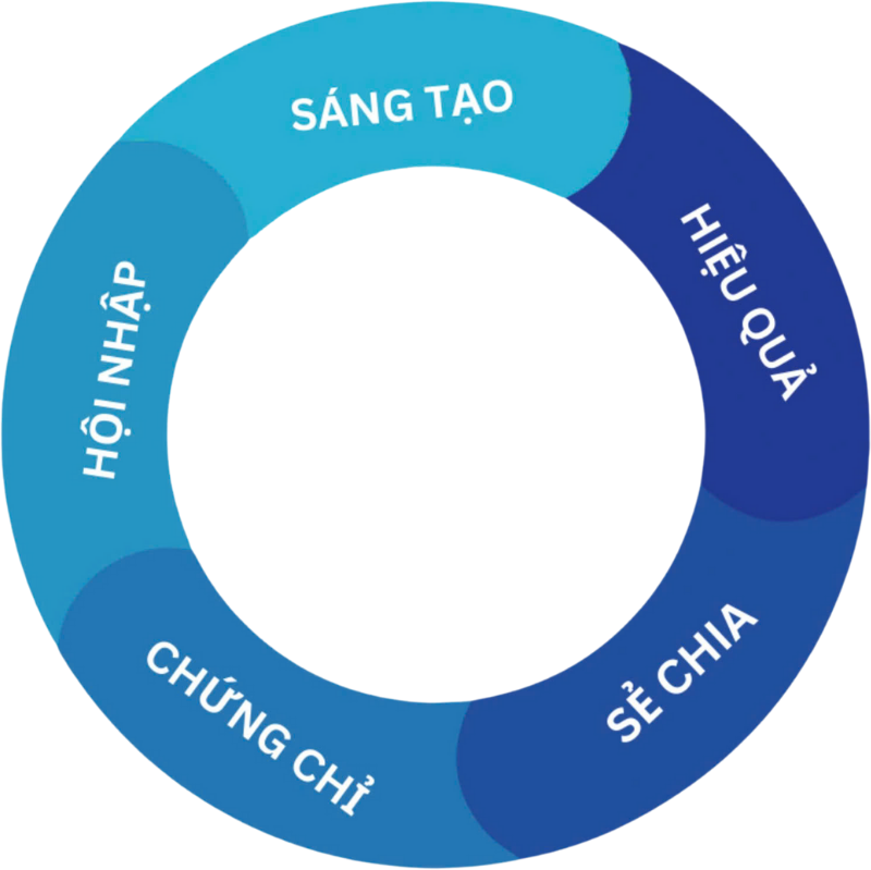 Duy trì mối quan hệ tôn trọng, thấu hiểu, hành động và tận tâm phục vụ để mang lại giá trị tốt nhất cho học viên, cộng đồng.